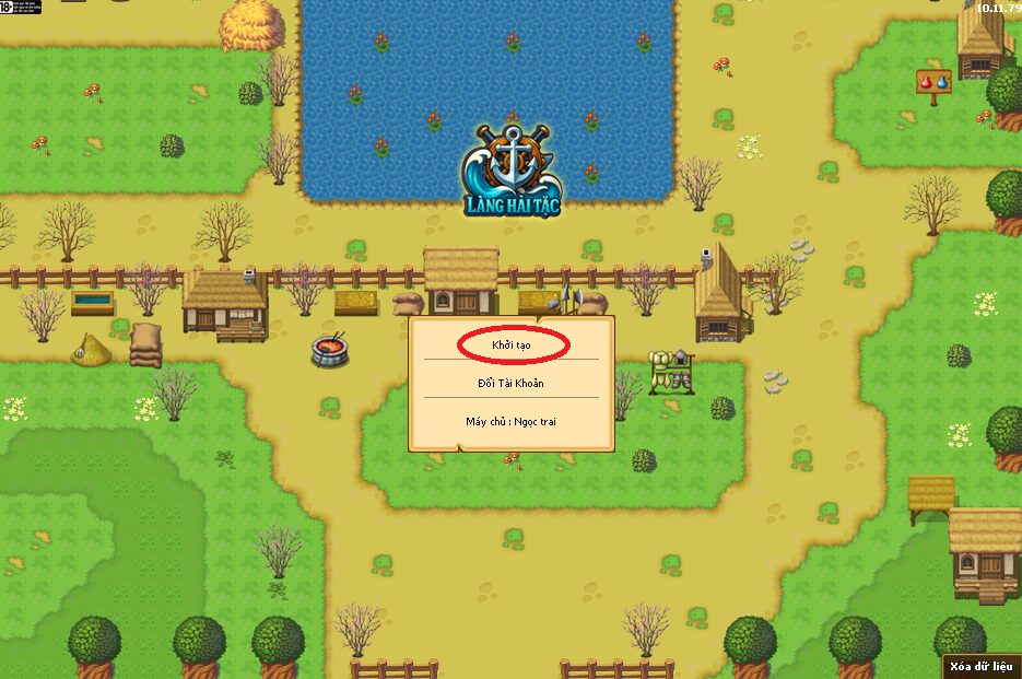Bước 1: Vào game chọn Khởi tạo (khoanh đỏ)