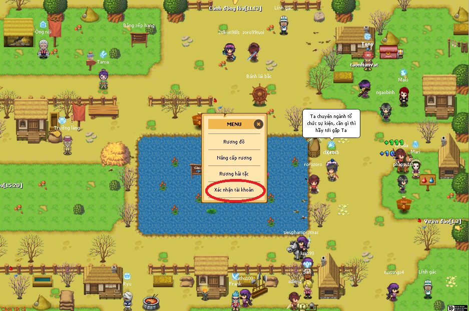 Bước 3: Khi nào cần tạo tài khoản tới NPC Tony (khoanh đỏ) để đăng ký