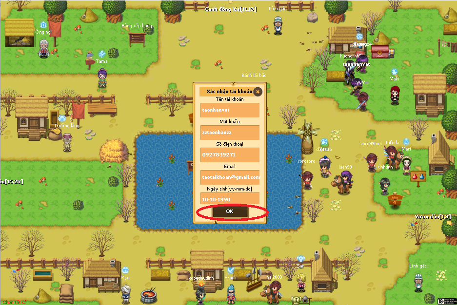 Bước 7: Bấm OK (khoanh đỏ) để xác nhận đăng ký tài khoản