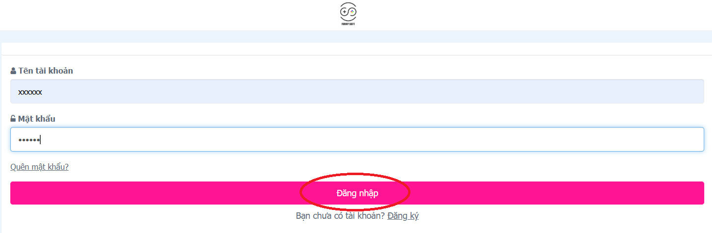 Truy cập vào website https://pay.funnysoft.vn điền thông tin tên tài khoản, mật khẩu sau đó chọn đăng nhập