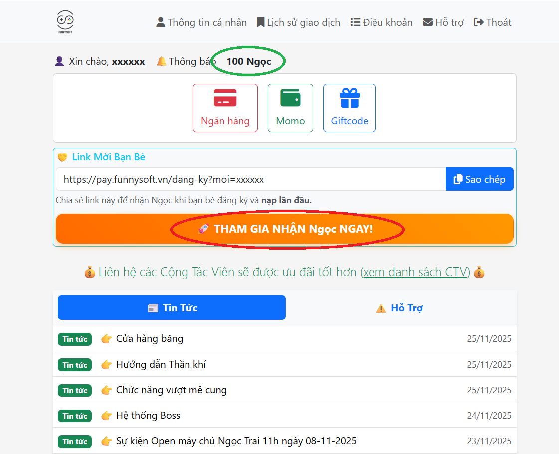 Bước 1: Đăng nhập vào trang https://pay.funnysoft.vn/